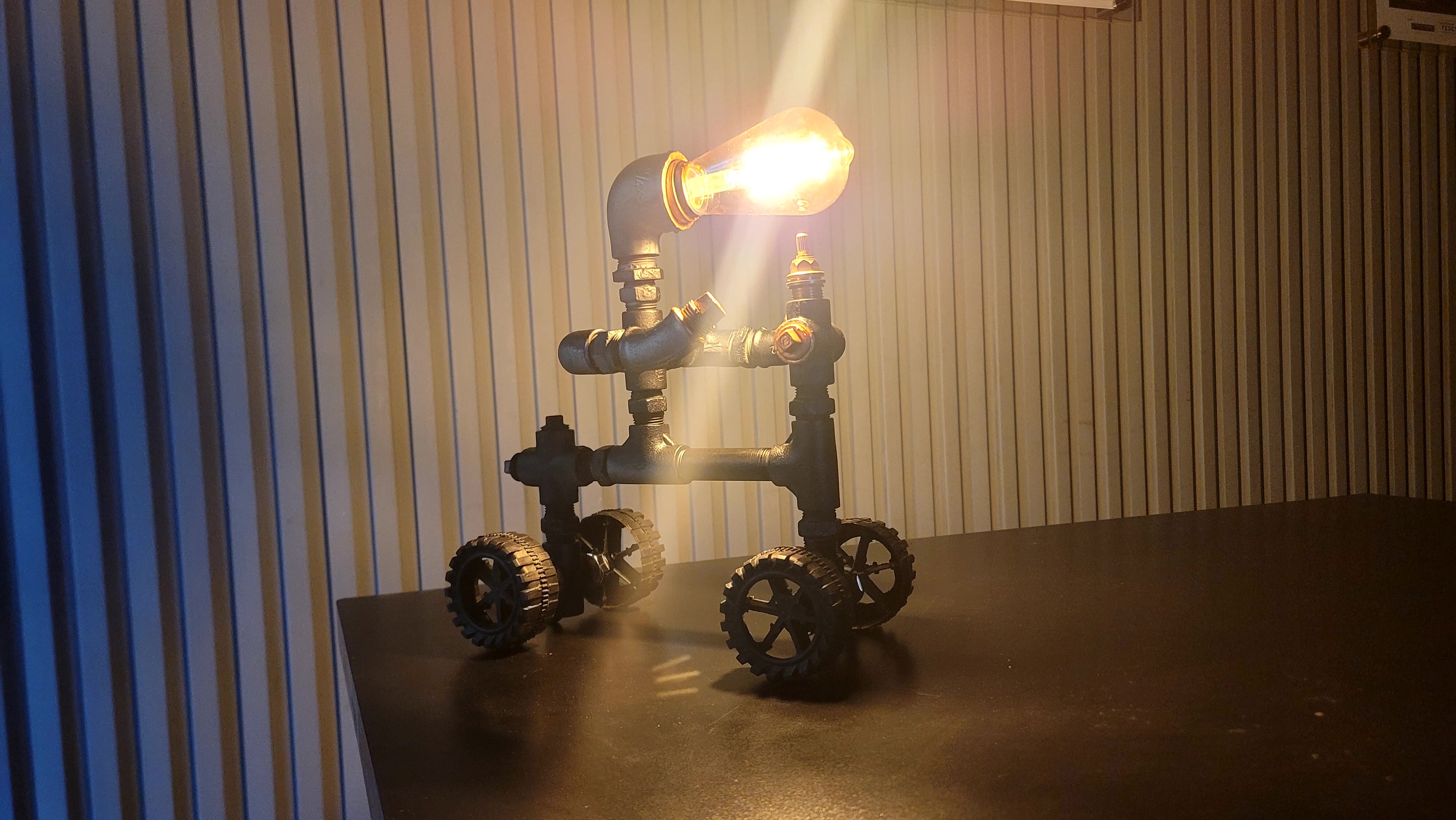 Forged from reclaimed steel and finished by hand, each lamp embodies a story of transformation — from raw, forgotten metal into a source of warmth and light. Every curve, joint, and weld carries the marks of craftsmanship, celebrating the beauty in imperfection and the strength in creation. The Edison-style glow that radiates from within isn’t just illumination; it’s a reflection of the maker’s touch and the character of the material itself.